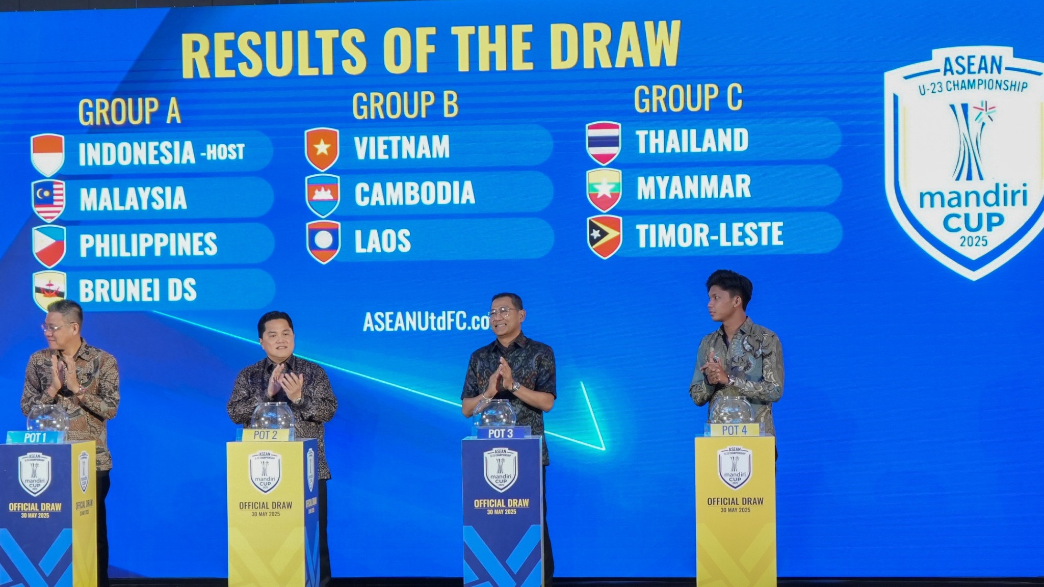 Selain Grup A, hasil undian lainnya menempatkan Vietnam, sang juara bertahan, di Grup B bersama Kamboja dan Laos. Sementara Thailand masuk Grup C, ditemani Myanmar serta Timor Leste.