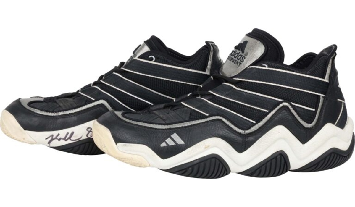 Sports Arena – Sepasang sepatu Adidas EQT Top 10 yang dikenakan legenda NBA, Kobe Bryant, pada laga pertamanya sebagai starter bersama Los Angeles Lakers terjual seharga US$240.000 atau sekitar Rp3,9 miliar dalam lelang yang digelar oleh SCP Auctions, Senin (28/7) WIB.