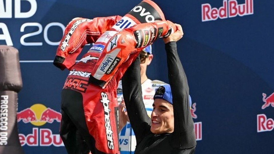 Bagi Marquez, kemenangan di Misano bukan sekadar poin atau podium. Ia merayakannya dengan mengangkat baju balapnya di hadapan publik, sebuah gestur yang langsung mengingatkan pada Lionel Messi di El Clasico 2017.